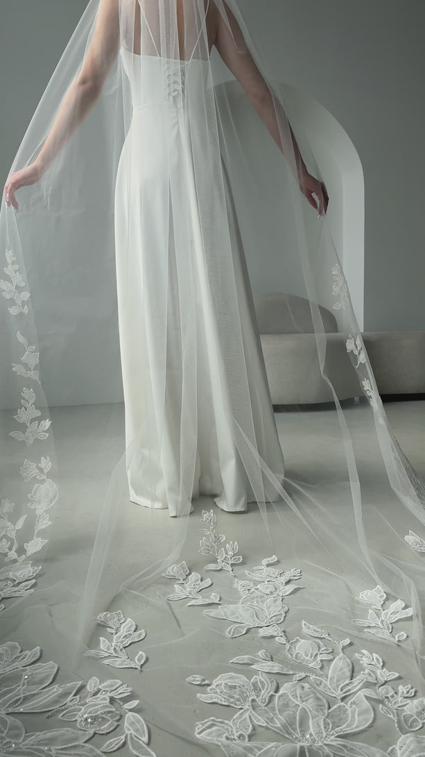 Gorgeous lace veil with big beaded flowers cathedral veil, MAGVB2/V-2501