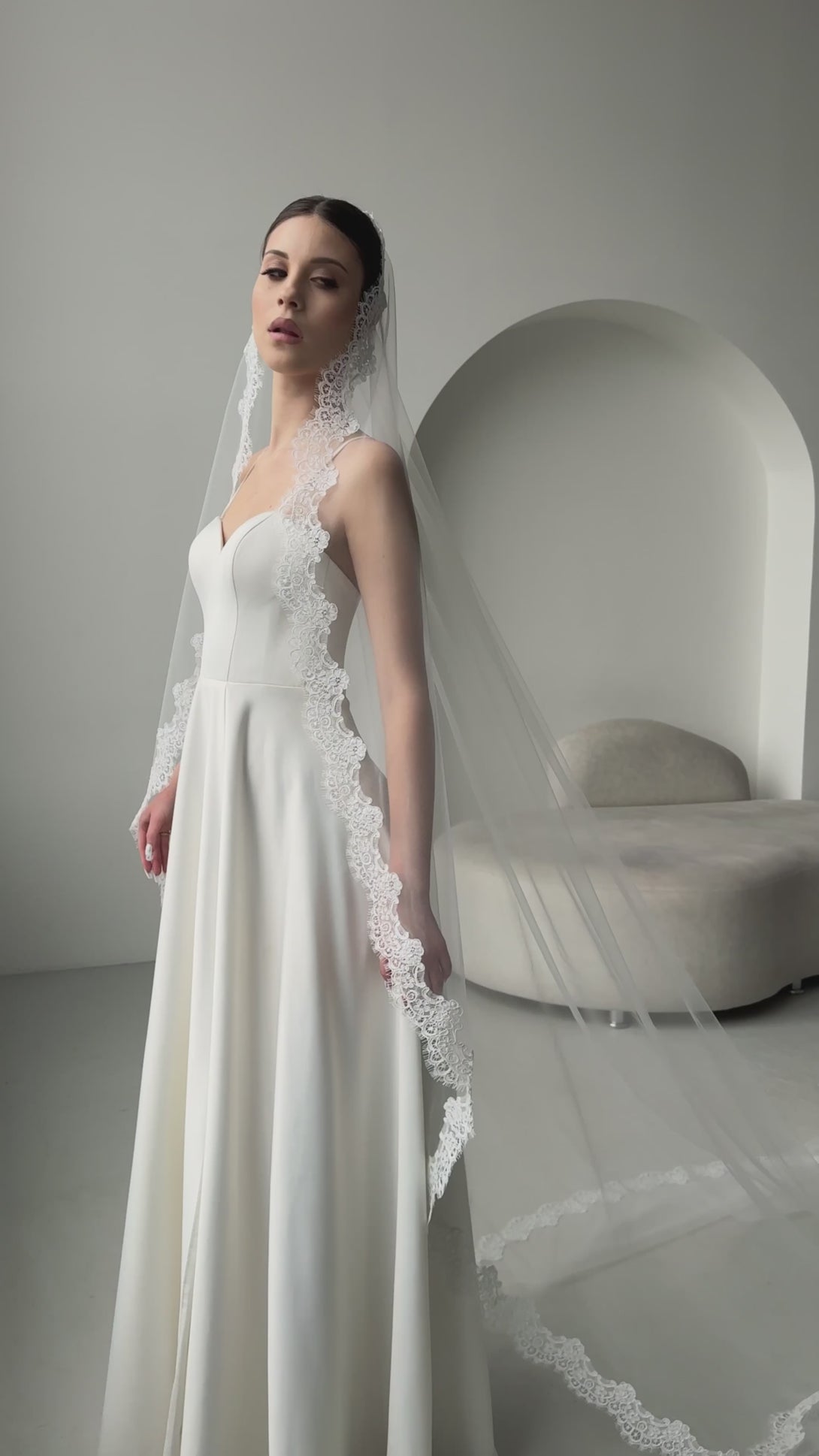 Lace trim mantilla wedding veil, LLCV20