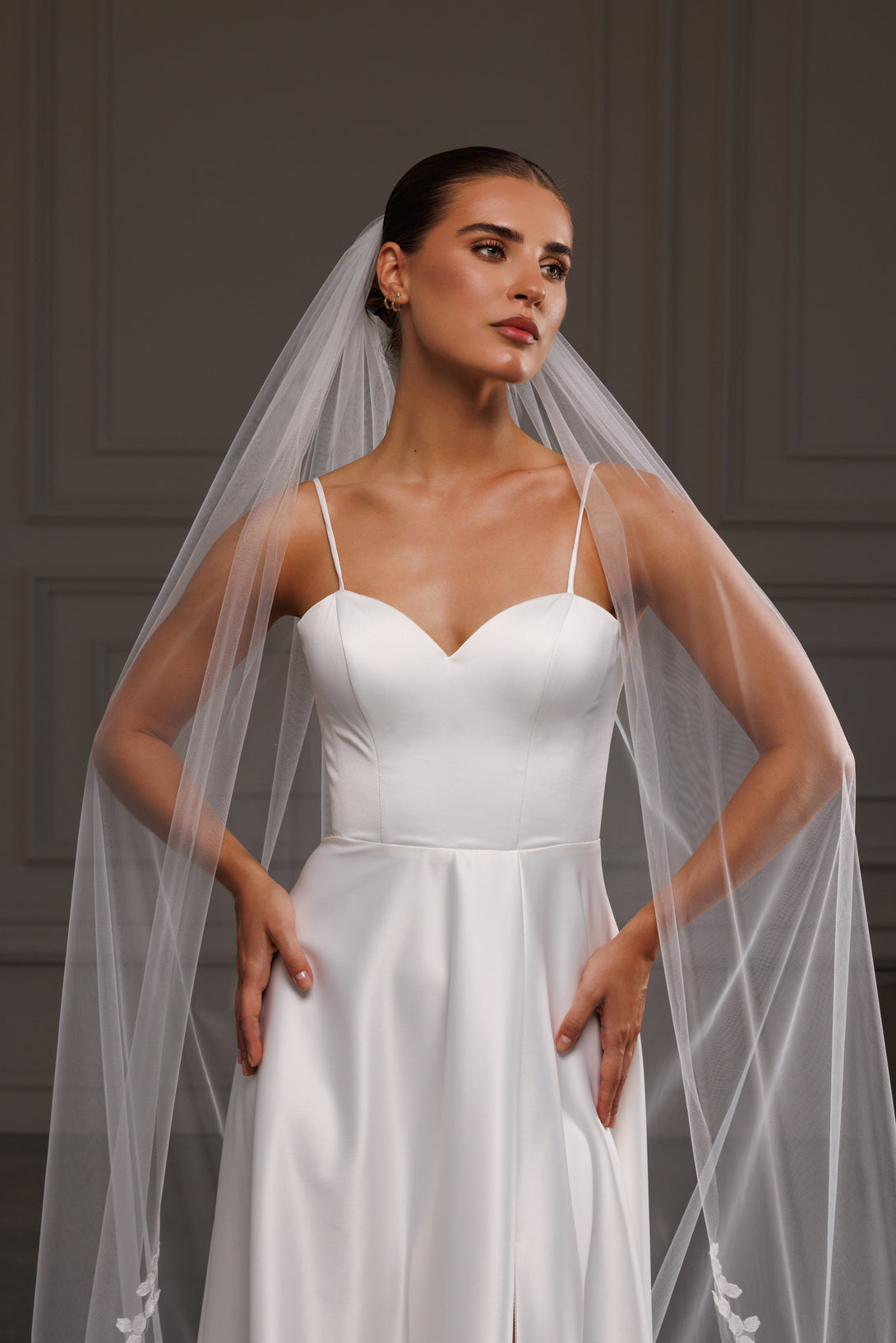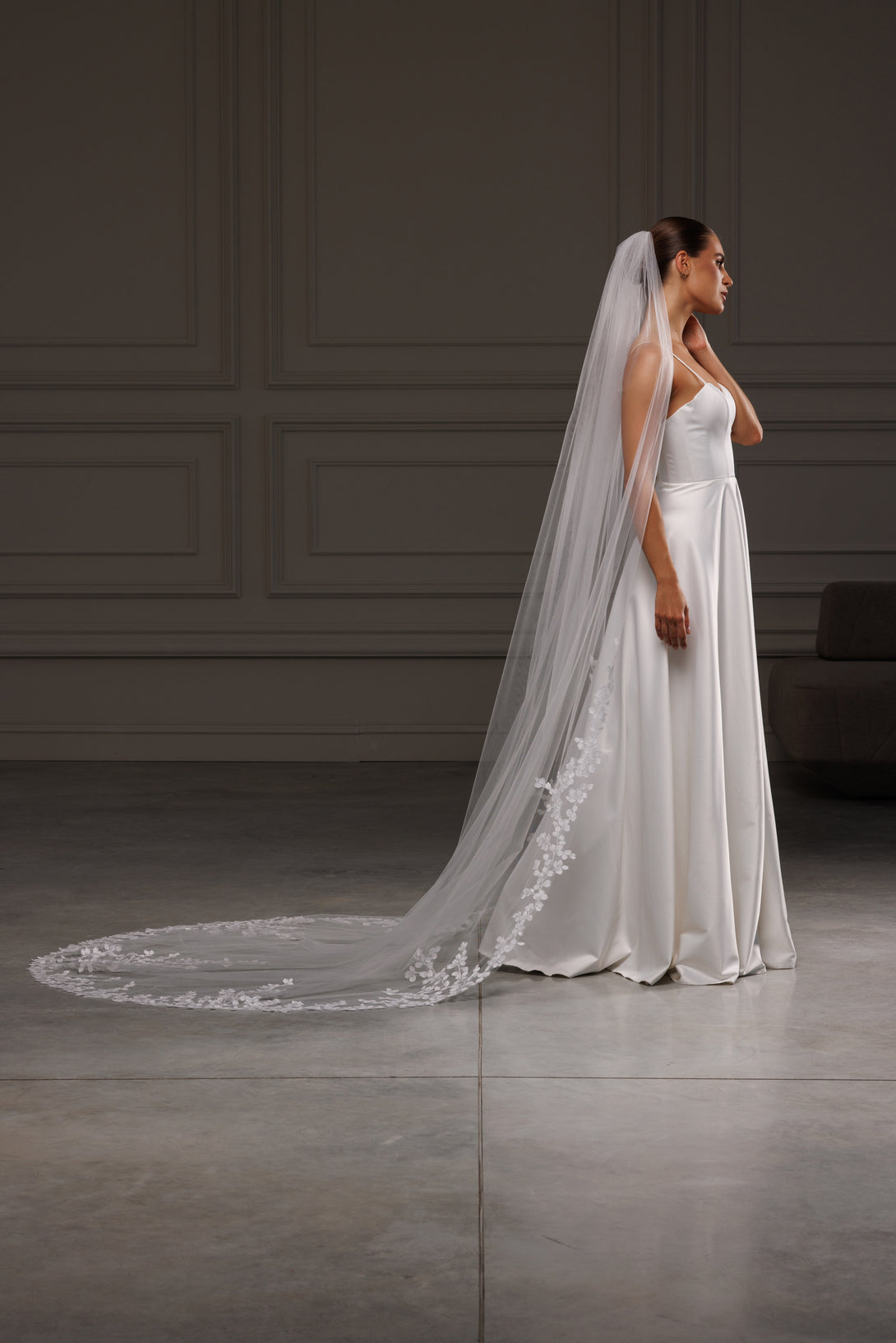 Lace One-Tier Bridal Veil | Simple Wedding Veil | Lace Edge Veil