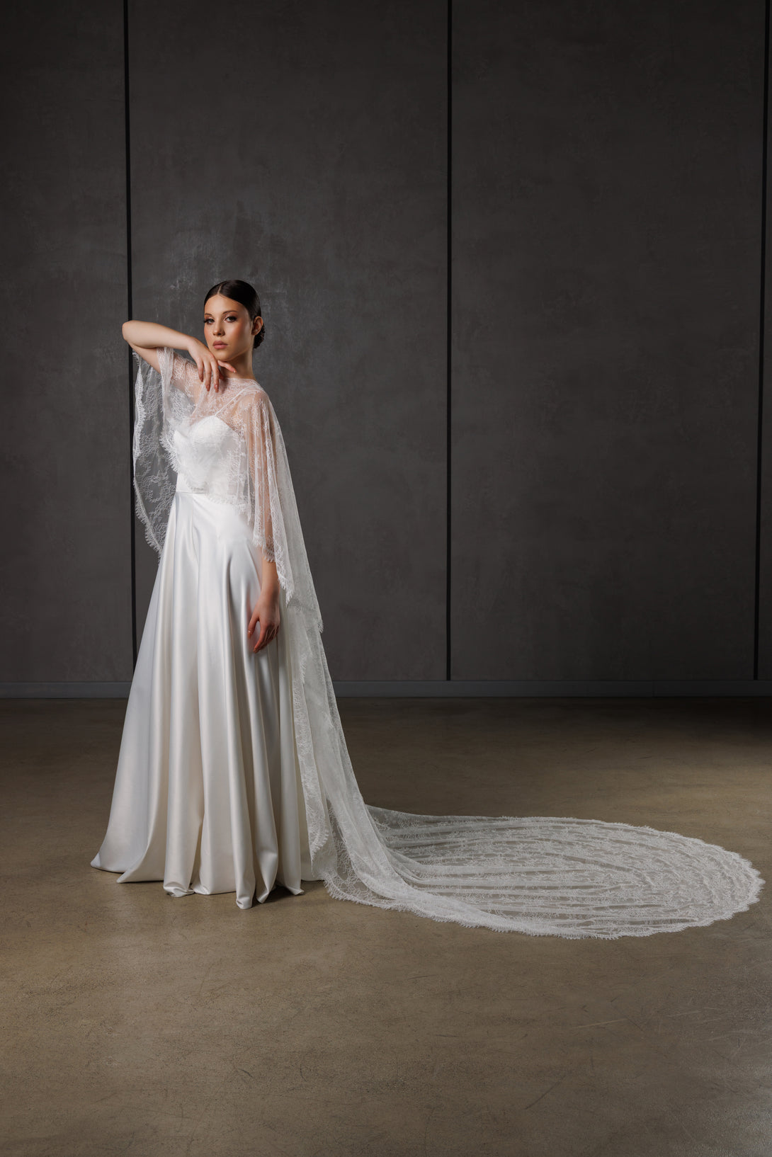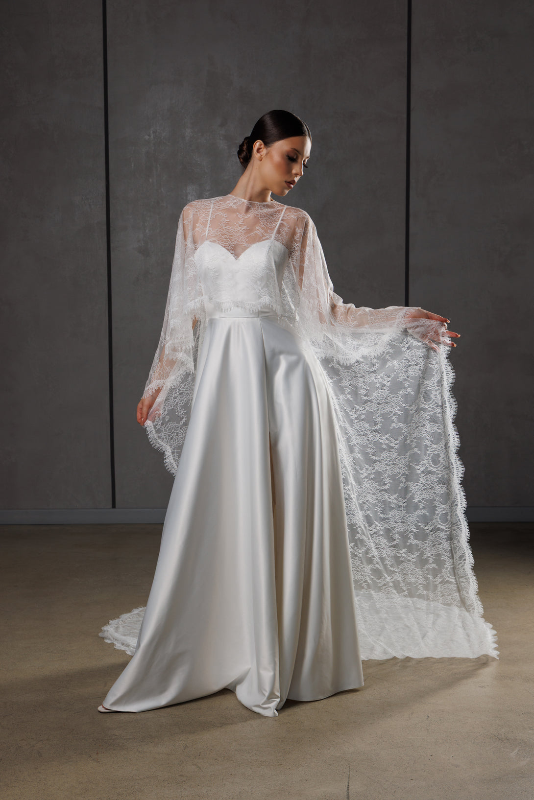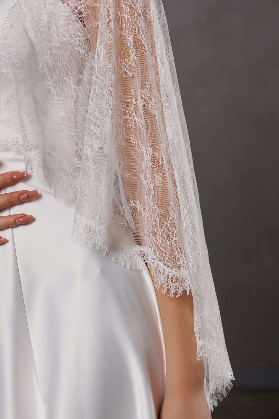 Lace Bridal Cape | Elegant Wedding Cover-Up | Detachable Cape Transform your bridal look with this elegant lace wedding cape, combining style, comfort, and versatility. Made from soft, sheer chantilly lace, it...
