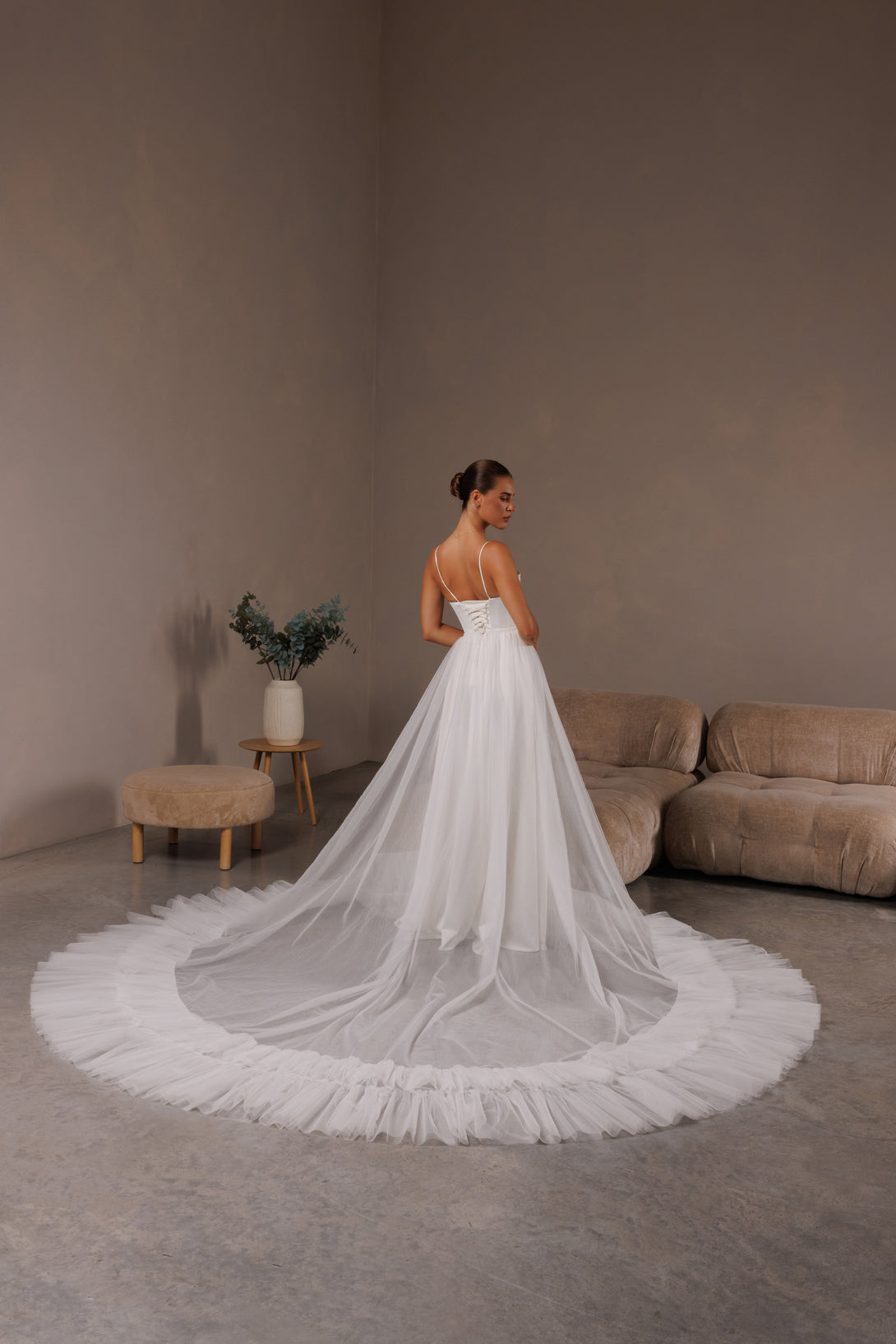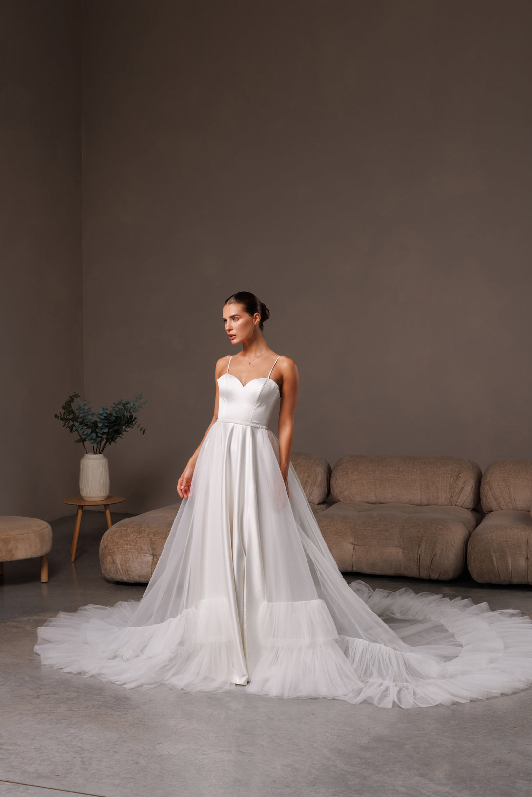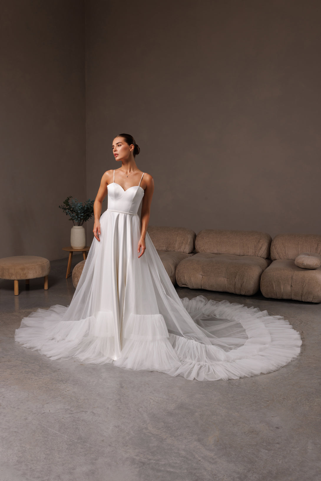 Elevate your bridal style with this romantic detachable tulle overskirt, created for modern brides who value elegance and versatility. Made from soft, lightweight tulle, it adds a touch of ethereal volume and a graceful train to any wedding gown. Perfect for transforming your look from ceremony to reception — or for that unforgettable, fairytale entrance.
