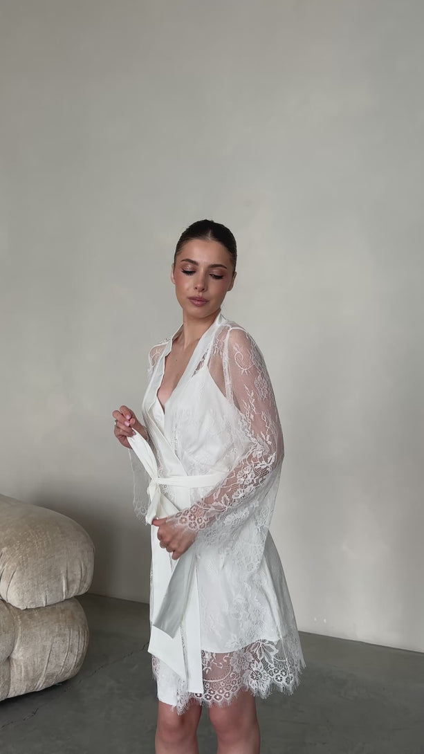 Transparent Lace Bridal Robe – Elegant Wedding Morning Robe for Bride